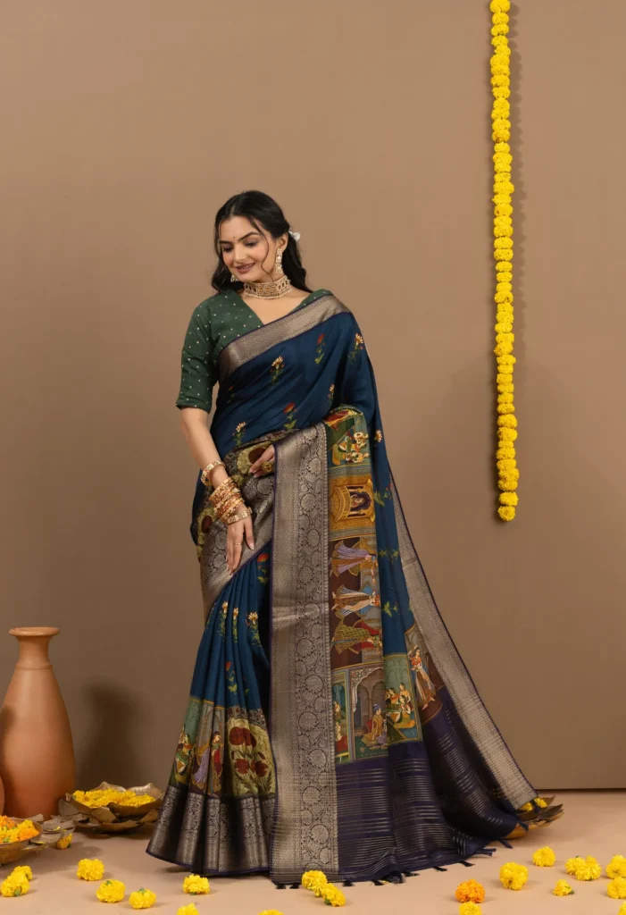 I was looking for something elegant yet comfortable, and the Amolika Neel Saree did not disappoint. The color is stunning, and the intricate detailing on the fabric adds so much charm. It's perfect for weddings and special occasions!